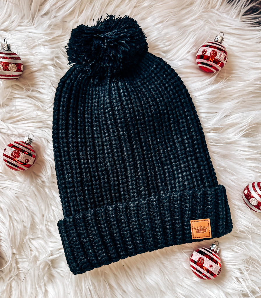 Stay extra warm and stylish with this Adult Black Knit Beanie. Featuring a black knit with a fleece lining and black pom-pom, you won't want to take off this winter essential! Make a statement in this cozy and chic design.