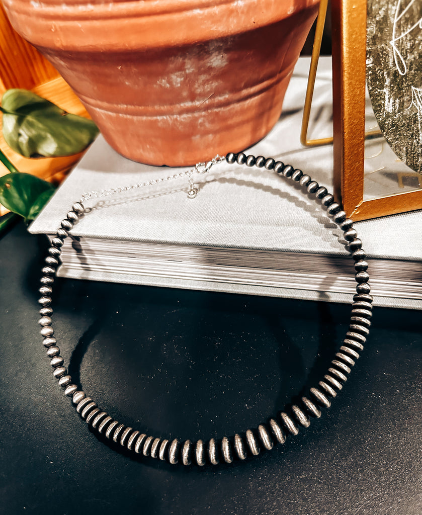 Add a touch of western flair with this Faux Navajo Beaded Necklace! Featuring faux Navajo beads in various sizes and a secure claw clasp, this necklace is perfect for completing any boho-chic look. Embrace your inner cowgirl with this playful and unique accessory.