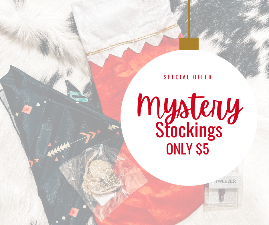 Christmas stocking filled with mystery items. These stockings are perfect for white elephant gifts, a gift for a friend or present for your work friend!