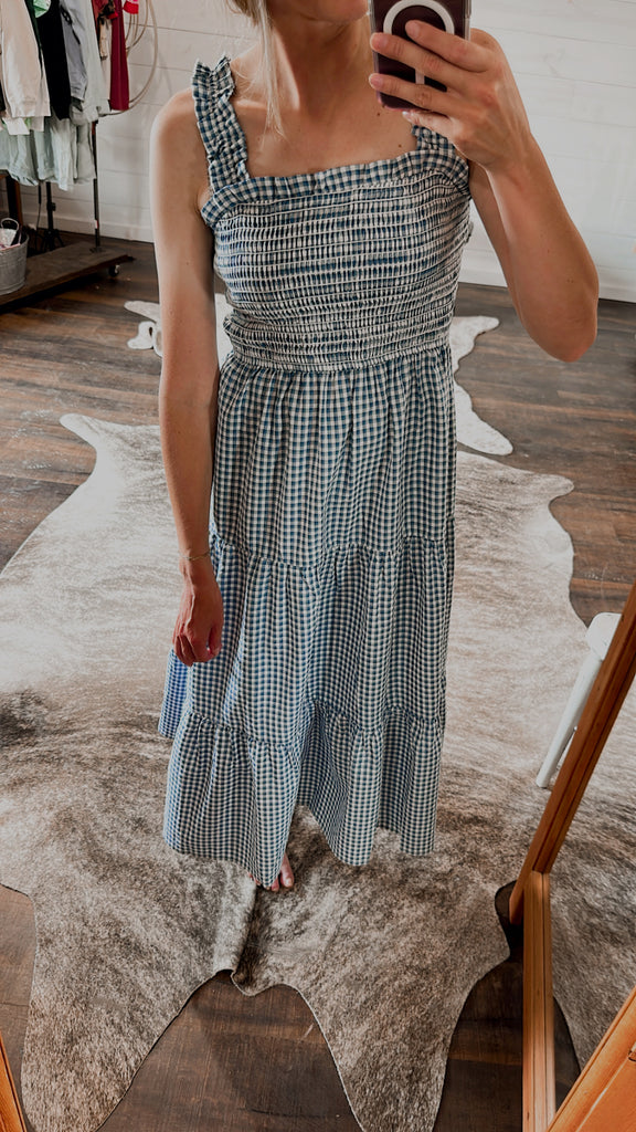 This Gingham Print Smocked dress is perfect for the trendiest of summer days! Its classic blue and white gingham print, and smocked fit ensures you'll be comfortably stylish. The A-line cut gives you a flattering silhouette, making it perfect for day or night. Embrace summer in style!