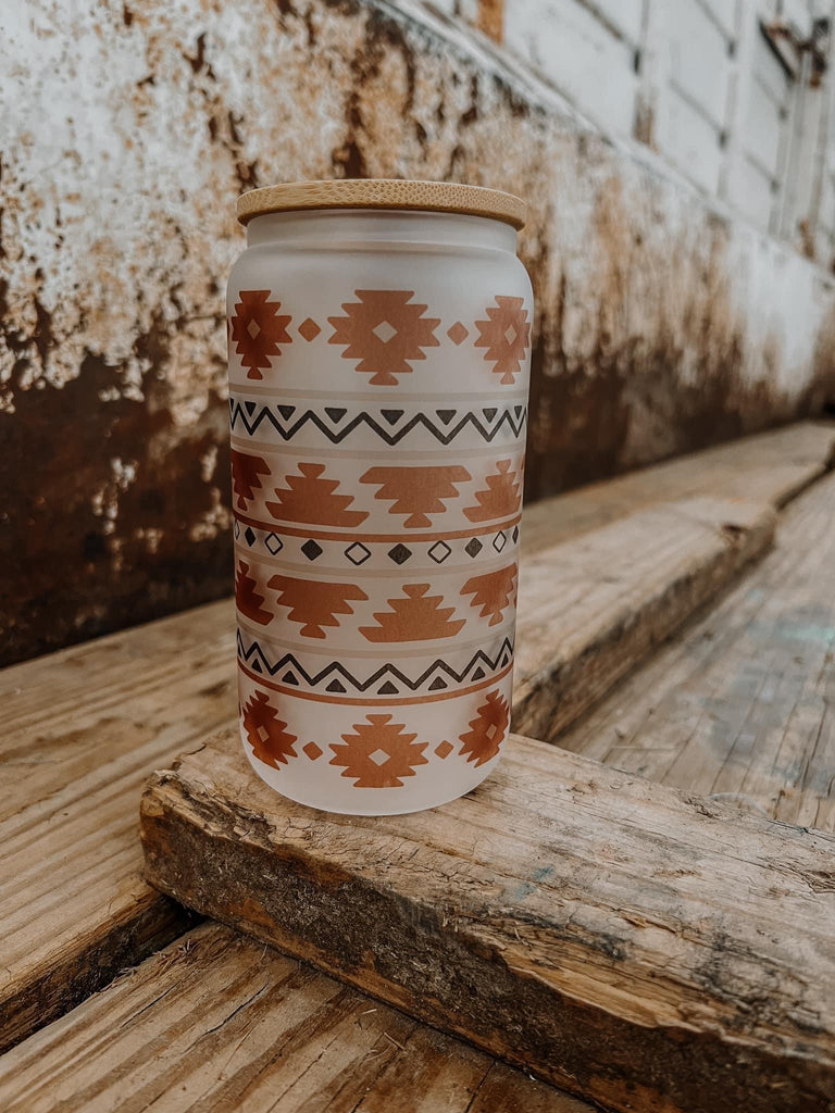 Ranch House Frosted Glass Tumbler - Rust Aztec