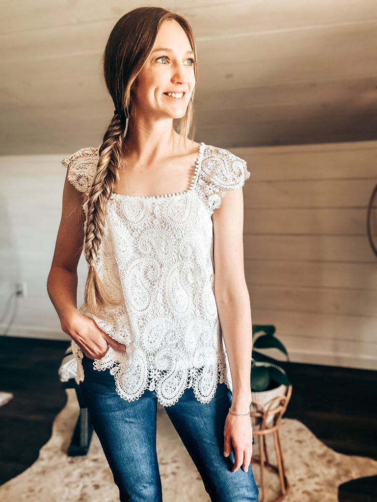 Stay cool and stylish this summer in our Crochet Detail Tank Top. Featuring a flowy fit and all-over crochet detail in a crisp white hue, this tank top is perfect for everyday wear. Upgrade your wardrobe with effortless, feminine charm.