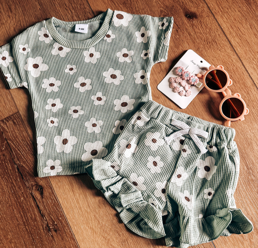 Kids Mint Floral Shorts Set