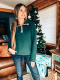 "Celebrate the holidays in style with our Christmas Plaid Pullover Sweater. Made from a cozy green quilted knit material, this sweater features a festive red, tan, and white plaid detail. The pullover style adds a casual touch, perfect for a cozy and comfortable Christmas."