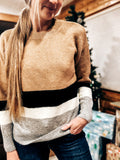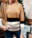 Introducing our Colorblock Ribbed Sweater, the perfect casual piece for winter. Made from super soft material, this sweater combines fashion and comfort effortlessly. Stay warm and stylish with its trendy color block design. A must-have for any winter wardrobe.
